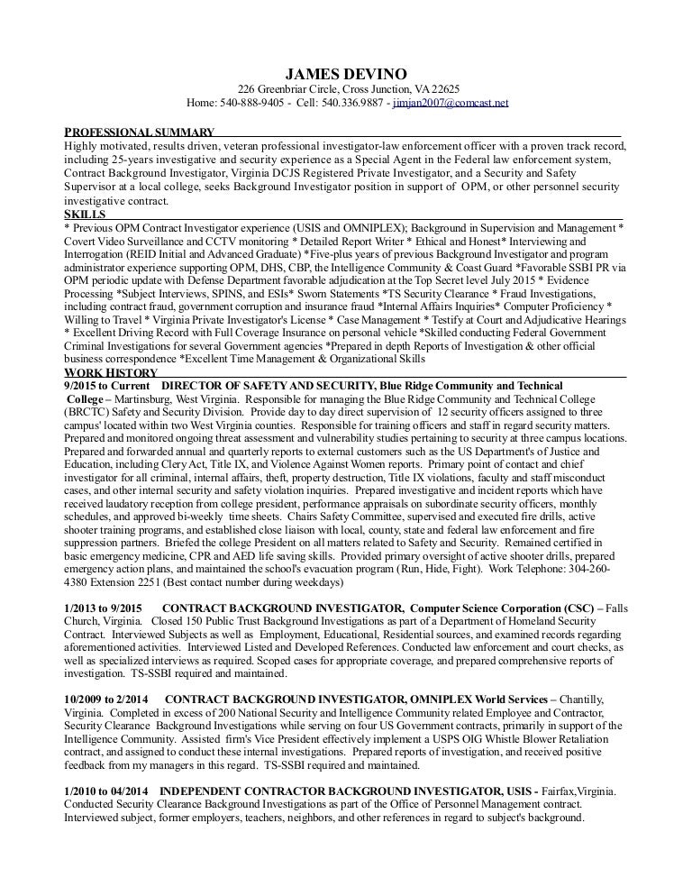 Usis Security Background Investigator Resume Sample Resumehelp- To See What Can Be Learned.