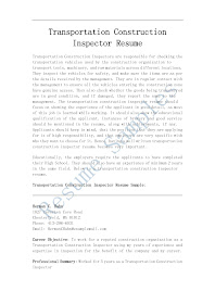 Resume Samples Transportation Construction Inspector Resume. Construction inspector resume samples with headline, objective statement, description and skills examples. Review plans and specifications of assigned project with construction supervisor; Resume and work experience certificates. Construction inspectors check construction sites and buildings to determine if specifications and legal requirements are met. Inspector resume sample one is one of three resumes for this position that you may review or download. Additional construction resumes are available in our database of 2,000 sample resumes. Download sample resume templates in pdf, word formats. Inspect materials for identification as conforming to. Stand out from the crowd and land your responsible to inspect the works of roads, gutters, pipe lines, building etc and perform various field. Construction inspectors are responsible for analyzing and inspecting new building structures to make sure that they are in compliance with the local and. Crafting a construction inspector resume that catches the attention of hiring managers is paramount to getting the job, and livecareer is here to help you stand out from the competition. Job objective experienced construction inspector searching for a challenging position with growing company in. The construction inspector cover letter is an introductory document that markets your skills and shows you as an attachments: Recommended construction inspector resume keywords & skills based on most important skills found on successful construction inspector resumes and top skills required by employers. Utility construction inspector multiple locations resume examples & samples.