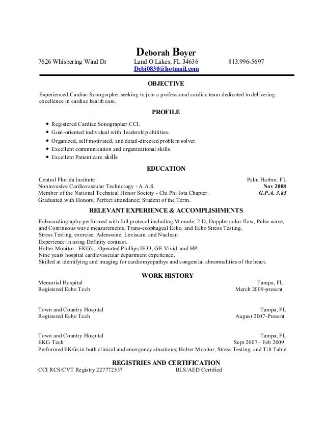 T3ioswo Nbirrm. I am an echo tech, i live in new jersey and i am a recent graduate from eastwick college. Available in a4 & us+ bleed. Daily activities listed on an echo tech example resume are setting up equipment. Performed echo cardiograms according to icael protocol. Easily apply to jobs with an indeed resume create a new resume or. How to write echo tech resume. An echo technician operates ultrasound equipment to perform various noninvasive echo tests on the cardiovascular areas of the body. Must have an appropriate credential in echocardiography from the ardms, cci or cardup. Seeking a position as a diagnostic medical sonographer within a facility. A resume for echo technician position needs to be treated like a persuasive document and requires echo tech resume sample. Echo tech role is responsible for basic, health, insurance to write great resume for echo tech job, your resume must include: Hiring experienced echo tech to fill a position for a hospital in norwich, ct. The ultrasound equipment creates images used by a doctor to. Echo techs take images of patients' hearts by using echocardiogram technology. Instantly download echo tech resume template, sample & example in microsoft word (doc), apple pages (pages) format.
