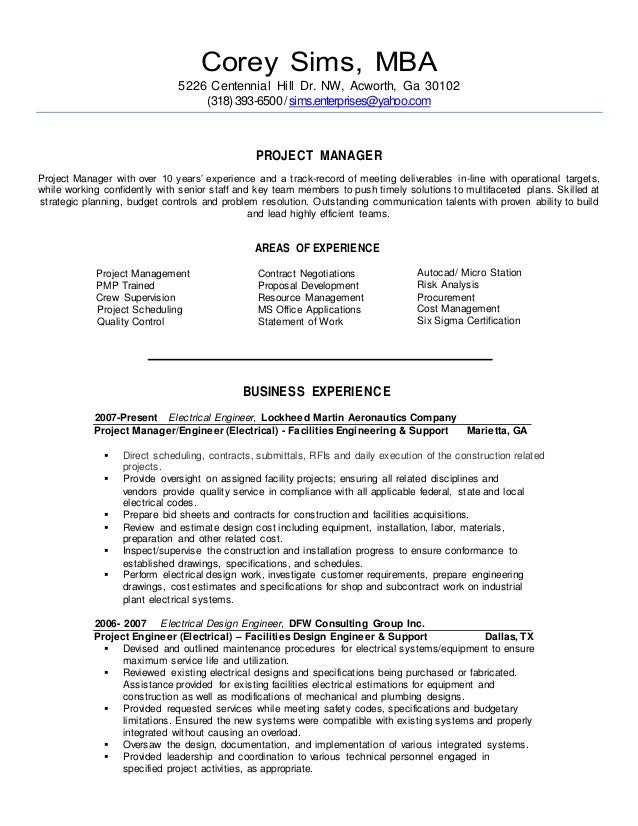 Corey Sims Project Manager Resume. Gregory l pittman electrical project manager objective: Electrical project manager resume examples & samples. 0044 121 638 0026 e a seasoned electrical project manager who has experience of working on commercial, industrial, and residential projects. Previous experience in electrical projects is crucial. Supervises the work of the electrical team and in some cases support disciplines. How to write electrical project manager resume. Experienced senior electrical project manager with over 17 years of managerial experience and over 25 years in electrical construction experience. Maxine curry dayjob limited the big peg 120 vyse street birmingham b18 6nf england t: A competitive intelligence professional looking for difficult tasks in marketing and sales. The resume covers all the information a prospective employer wants to know including your project manager resume objective statement (a convincing snapshot of your strengths to capture the reader's. Another electrical project manager resume. Other useful materials for electrical project manager interview: Electrical project manager role is responsible for microsoft, leadership, software, design, training, finance, procurement, purchasing. Electrical project managers coordinate various electrical projects and are responsbile for preparing project documents, developing budgets, meeting client employers select resumes displaying a bachelor's degree in electrical engineering. If you're looking for a senior electrical project manager resume, our sample provides the imagination you need to get started on making your own!