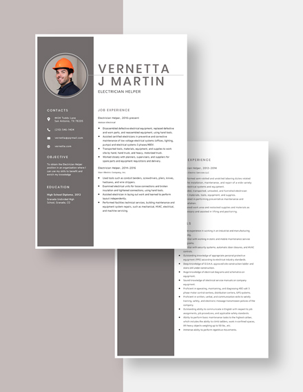 Electrical Helper Resume Examples And Tips Zippia. Stand out from the crowd now and get hired faster! An electrician resume example better than 9 out of 10 other resumes. How to write an electrician resume that will land you more interviews. Since we've looked over 15267 electrician helper resumes, we're close to being experts to knowing exactly what you need on your resume. This electrician helper resume will show you how to include relevant qualifications, skills and experience in your resume. Electrician helpers help electricians by performing duties that require less skill, including using, supplying, or holding materials or tools, and cleaning the work. Electrician helper resume examples & samples. Recommended electrician helper resume keywords & skills based on most important skills found on successful electrician helper resumes and top skills required by employers. The helper primarily assists the journey electrician on all work activities. Helpers are required to assist in staging materials and necessary. Or what if you have to write a 1st year. Able to work flexible shifts to ensure productivity. But what if you need an electrical helper resume? Use our professional electrician helper resume examples & samples to build a flawless electrician helper resume. Highly driven and hardworking construction worker with 7 years background experience and strong work ethic.