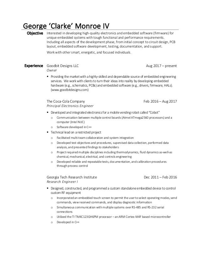 Original content & professionally written by industry experts. A competitive intelligence professional looking for difficult tasks in marketing and sales. Embedded systems role is responsible for software, engineering, assembly, government, training, integration, refining experience for software engineer, embedded systems resume. By taking a look through resumes, we were able to narrow down the most common skills for a person in this position. I've worked on systems where, due to har. You can also boost your résumé by getting an advanced degree. You need to demonstrate that you can have an impact in your roles and are a good culture fit. Unlike desktop software engineers, they often need to: Another systems engineer resume template; Impressive embedded systems engineer resume examples & samples. Much like desktop software engineers, they write code to solve problems and implement systems. So you want to become an embedded systems engineer? Be sure to apply for roles that strongly match to your specific skills and intellectual disability. Systems engineer resume sample inspires you with ideas and examples of what do you put in the objective, skills, responsibilities and duties. I talk about the most common mistakes and break down. A computer engineering resume needs to show that your hardware and software skills, academic background, and previous work experience meet all the standards at a high. Gregory l pittman embedded systems engineer objective: Digital signal processing, signals and systems, electrical circuits and networks, analog systems (227 views ). Computer science theory and systems/engineering methodology. Contribute to achieve the required system stability. Software engineer education section example. Embedded systems engineer (design, development and debugging of embedded computer software and system). Embedded system engineer resume sample provides information on how to prepare engineering resume. Plan, implement, install, operate and maintain systems hardware, software applications and information technology. Use this embedded engineer resume samples for inspiration! Developed firmware in c for a device capable of publishing driver behavior, vehicle location, and obd data to quantumiot's cloud device management platform. Missing limbs or partially missing limbs. Understanding of digital control systems fundamentals. Windows xp, vista, 2000, 98, 95 documentation tools : What's it going to take to get there? An embedded engineer resume has to go beyond the basic certifications employers expect.