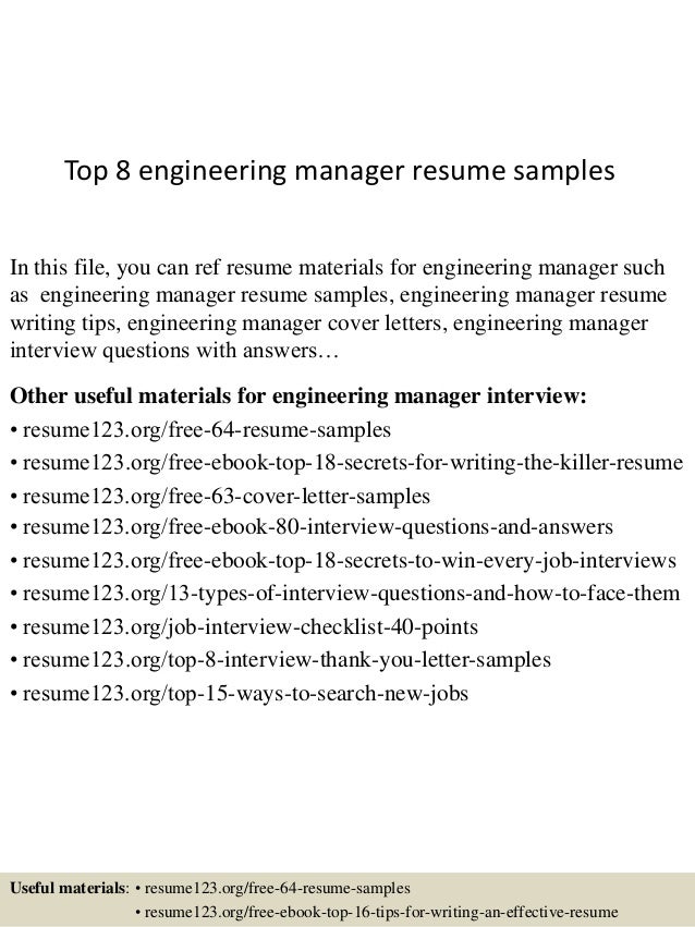 Have an in depth knowledge of civil engineering principles and theories. It developer engineer resume sample. Looking for engineering manager resume samples? Use indeed library of free engineering resume examples and templates. Use this engineering manager resume example and tips to show an employer how you can help them compete successfully in today's highly competitive market. Read our management resume guide and learn how to take a manager's resume to the next level. Senior engineering manager resume in pdf. Customized samples based on the most contacted resumes from over 100 million resumes on file. 20+ engineering manager resume samples to customize for your own use. See more ideas about engineering resume templates, engineering resume, resume templates. Lead software engineer/engineering manager resume. Check out this resume sample for an engineering project manager to see how you can emphasize project results and engineering expertise on your midlevel engineering project manager resume template. Coinify devops engineer resume example. A showcase of some of the best engineering manager resume samples and examples on standard resume. Nail that manager resume objective, highlight the right managerial skills, and start getting more interviews thanks to expert tips and hacks. How to write letters sample letters for your important situations. Level up your resume with these professional resume examples. Use this software engineering manager resume template to highlight your key skills, accomplishments, and work experiences. Software engineering manager resume sample. Use our professionally crafted mechanical engineering resume sample and expert writing tips to assemble the perfect resume and land more interviews. A proven job specific resume sample for landing your next job in 2020. Engineering manager resume examples & samples. Looking for an engineering resume? They must be able to organize effective engineering initiatives, coordinate actions with management and production and marketing staff, as well as being. An engineering resume may include specialized section headings such as 617.555.2222. Useful materials for engineering manager interview: Project manager resume examples & resume writing guide. Create job winning resumes using our professional resume examples detailed resume writing guide for each job resume samples for inspiration! Project manager resume template | premium resume samples & example. Have an in depth knowledge of civil engineering principles and theories. You can quickly and easily craft a good objective for your mechanical engineering resume or cv using any of our best 22 samples.