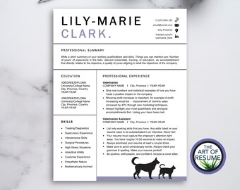 Veterinarian Resume Template For Ms Word Pages Cv For Etsy : Conduct Tests And Observations To Provide A Proper.